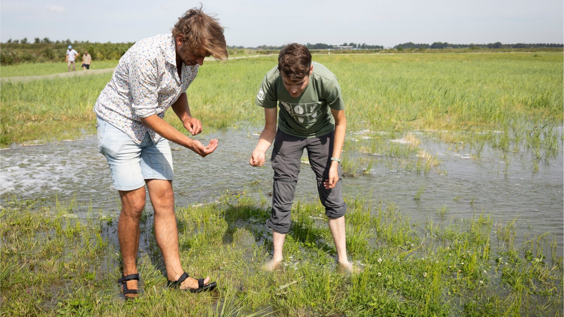 Om daarachter te komen, zetten onderzoekers van verschillende universiteiten, onderzoeksinstituten, overheden en natuurorganisaties afgelopen augustus meer dan een hectare van de Eendragtspolder in Zevenhuizen tijdelijk onder water. Een moment waarop alle betrokkenen drie jaar hebben gewacht, vertelde Maarten Schrama van Universiteit Leiden vlak voor de inundatie – een mooi woord voor onderwaterzetting. ‘Het is ontzettend belangrijk om met al deze partijen samen te werken en te kijken naar de gevolgen van de waterkwaliteit tot aan de beleving van de omwonenden.’