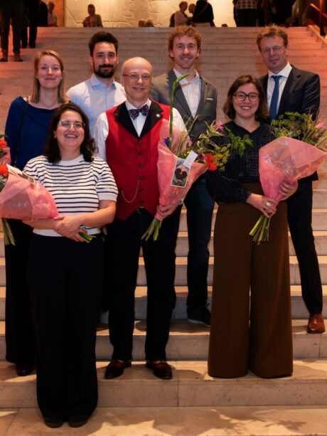 Stefan Sleijfer (rechts bovenaan) met de winnaar van de Erasmus MC Onderwijs Fellow en winnaars van de Young Investigator Grants.
